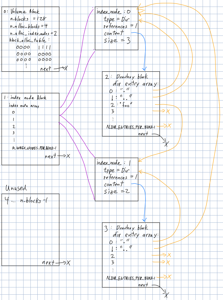 - 2020-11-05: The ordering of the bits relative to the blocks in the block allocation table is that block 0 corresponds to byte 0, bit 0; block 1 is byte 0, bit 1, etc. This is documented above. However, the find_open_bit() documentation that we gave you in myfs_lib_skel.c suggested that the bits are ordered in the opposite way. Stick with what is documented here.