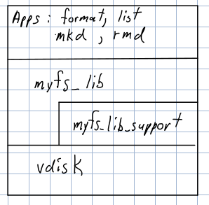 - myfs_lib (TO BE IMPLEMENTED) provides a set of virtual